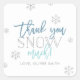 "TACK SNÖ MUCH!" Minneshögtid denna speciella milstolpe med den här snyggten och det moderna vintertemat tack vare ditt klistermärke. Med chic-hanterad skripttypografi och faux silver glitter snöflingor. Modern, klar och färglös.
