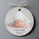Favorittaggar i tack Nyfödda babybildsvyn i Baby innehåller ditt favoritfoto med texten "Tack" i elegantens moderna svarta skript. Anpassa genom att redigera texten i textrutorna. PHOTO TIP: centrera fotot innan du överför det till Zazzle för bästa resultat. Designad av ©Evco Studio https://www.zazzle.com/store/evcostudio