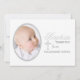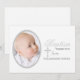 Vitbakgrunden har ord "dop" och förskönas av en invecklad silverkor. Det ovala fotofönstret inramas också i silver. Koordinater beautifully med vår inbjudan för foto för dopordsilver.