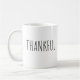 Ett enkelt, modernt fall kaffe mugg med citatet "Tack och lov". Gör en underbar värdinna-gåva till Thanksgiving.