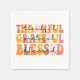 Utformningen "Tack, tacksam, välsignad" är en levande och upplyftande representation av Thanksgivingen. Det har tre nyckel ord, som var och en uttrycker sin tacksamhet och sin positiva inställning.