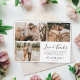 Elegant, minialistiskt handskrivet Bröllop-fototack. Snyggt bröllop-kortmall med tre (3) foto på framsidan och ett foto på baksidan på fullt. Med texten "Kärlek och tack" i ett snabbt och välskrivet typsnitt för typografi i svart på vit bakgrund. Anpassa med ditt namn och tack för meddelandet. Ett litet hjärta mellan namn. Om du föredrar att skicka anteckningen tar du bara bort exempeltexten för att få mer utrymme. Kontakta mig om du behöver hjälp eller matcha objekt!