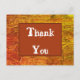 Säg "tack" med ett billigt vykort med vackra höstfärger i orange, gul och brun. Bakgrunden visar tunna horisontella linjer i höstfärger som liknar halm eller torkat gräs. En stor rektangel i mitten i rostorange ger den solida bakgrunden för "Tack" som lätt kan anpassas om du vill.
