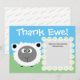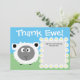 Cute, roliga får "Tack Ewe" med daisy, redigerbar så att du kan lägga till ditt eget personliga meddelande. Baksidan har en upprepad typografi av tack