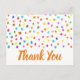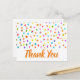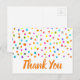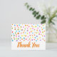 Prickig söt akvarell tema med tack citat. Söt modern enkel design med regnbågsfärgade akvarellprickar eller fläckar. Ren samtida design. Whimsisk, boho och rolig, Ljus och färgrik. På vit bakgrund för en ren söt look.