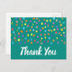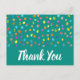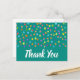 Prickig söt akvarell tema med tack citat. Söt modern enkel design av regnbågsfärgade akvarellprickar eller fläckar. Ren samtida design. Whimsisk, boho och rolig, Ljus och färgrik. På tealblå bakgrund för en ren söt look.