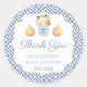 Tack för alla händelser (visas här för en babyåda, men all text fält är anpassade). Utformningen har en blå och vit ingefära burk vas fylld med orange och vita blommor, med vattenfärgspumpor på vardera sidan. Bakgrunden är ett blått och vitt grekiskt Nyckel mönster.