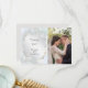 Lägg till ditt foto - En skimrande isblå lysande bakgrund med lysande rosenblad, eucalyptusblad, gips och gnistrande stjärnor. Baksidan har en kompletterande koordinerad färg. Denna design ser särskilt snygg ut på pärlluminerat papper. Anpassa text, typsnitt, färg och storlek. Vi har skapat denna mall för att göra det enkelt för dig att anpassa den med din egen information. Detta är en del av en komplett brölloppspresentserie med matchande bröllops-, baby shower- och andra evenemangskort. Originalkonst © av WhimsicalArtwork™.