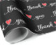 Tack för kursiv text med kopplat rött hjärta på svart bakgrund. Bakgrunden till färg kan ändras.