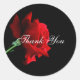 Runddekal med svart bakgrund och vackert röd ros. Text: Tack Anpassa det här objektet eller köp som det är.