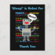 En söt och färgrik design som säger tack på många språk. En robot står framför och säger Bleep! Resten av texten säger "Bleep!" är Robot för Tack!. En del av texten i denna design kan ändras och anpassas för att passa dina behov!