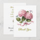 Det här eleganta tackkortet fångar essensen av hjärtlig tacksamhet med sin ömtåliga design. Med mjuka rosa hortensior i full blom, tillsammans med frodig grön lövverk, utstrålar kortet en känsla av naturlig skönhet och romantik. Ett graciöst rosa band knyter elegant ihop designen och tillför en touch av charm och sofistikation. På baksidan av kortet finns det varma budskapet "som uttrycker din tacksamhet gentemot gäster som delade din bröllopsdagfirande" skrivet med ett raffinerat, flödande skrivstil.