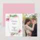 TACKKORT MED FOTO | Akvarell rosa vallmo med grönt pryder en geometrisk mångfacetterad ram i guld. Baksidan har en komplementär färg. Anpassa text, typsnitt, färg och storlek. Vi har skapat denna mall för att göra det enkelt för dig att anpassa den med din egen information. Detta är en del av en komplett bröllopspappersserie med matchande bröllops-, baby shower- och andra evenemangskort designade av WhimsicalArtwork™.