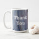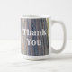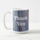 Säg tack till någon som är speciell med det här rustiska morgonkaffet eller teet mugg. I mugg finns ett foto som fångar vackert lodrät rand av skogskorn som visning jordton färg av brunt och grått. Mönster skapar en häpnadsväckande bakgrund för "Tack" som visas på båda sidor om mugg med vitt westernt teckensnitt. Texten kan enkelt anpassas efter dina behov i kostym.
