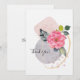 En delikat akvarellkomposition med en blommande rosa blomma, mjuka gröna blad och en enfärgad fjäder. Detta konstverk är förstärkt med abstrakta geometriska former, inklusive en texturerad rosa fyrkant, en grå cirkel, gyllene oval slinga och rosafärgade prickar.