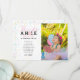 Söt födelsedagsfest tackkort efter en donut tema födelsedagsfest med munk illustration med strössel. Texten högst upp säger "Tack så mycket" med en donut inuti texten. Anpassa denna mall inbjudningskort genom att lägga till ditt barns namn längst ner och ett foto.