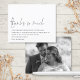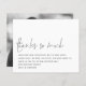 Ett ekonomiskt alternativ i BUDGET på en mindre storlek på 4,5 x 5,6 tum (110 lbs vikt), som är av samma tjocklek som ett vykort (är dock inte lämpligt för använda som vykort). OBSERVERA ATT DET FINNS EN inbjudan per lakan. Budget Modern Script Photo Bröllop. Tack så mycket finns i en handskriven stil med detaljerna nedan. Det finns mycket tomt utrymme överst för att få en contemporary pekande! Anpassa enkelt resten av texten till ditt meddelande och ersätt exempelfotot på baksidan med ditt eget, vilket automatiskt ändras till svartvitt. Om du vill ta bort det svarta och vita filtret klickar du på anpassa ytterligare och väljer filteralternativet och väljer Inget filter.