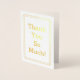 Denna rena guld folie tack-godkännande gratulationskort design har budskapet "Tack så mycket!" på framsidan, tillsammans med ett personligt meddelande på insidan. Det kan användas för att visa tacksamhet till någon som har gjort en speciell insats.