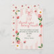 Skicka en söt hälsning med detta bedårande "Tack så mycket"-kort, perfekt för jordgubbsinspirerade födelsedagsfester! Med charmiga akvarelljordgubbar, vita blommor och en rosa rosett, låter detta redigerbara kort dig anpassa ett hjärtligt meddelande till dina små gäster. Ett underbart sätt att lägga till en speciell touch till din bäriga födelsedagsfest!