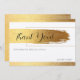 Elegant modern och rakt på sak wedding design med Tack så mycket - svart handskrift typografi på en guld enkel penseldrag och kant.