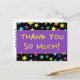 Den här trevliga, personlig-tack-du-vykortsdesignen innehåller meddelandet "TACK SO MUCH!" på framsidan, tillsammans med ett personlig på baksidan. Det skulle kunna användas för att erbjuda tack till någon som har gjort ett speciellt dåd.