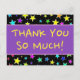 Den här trevliga, personlig-tack-du-vykortsdesignen innehåller meddelandet "TACK SO MUCH!" på framsidan, tillsammans med ett personlig på baksidan. Det skulle kunna användas för att erbjuda tack till någon som har gjort ett speciellt dåd.