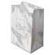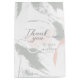Tack vare dessa 7-tums x 4,5 x 10-tums presentsäckar med hälsning, "Tack," i stort grått brev på en blommigt med abstrakt vattenfärg i mjuk , vit och sage med platshållare för bröllop parets första bröllopsfest och namn-datum.