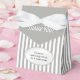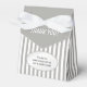 Säg "Tack" till gästerna i party med de medföljande textmallarna. De gör det enkelt att ändra texten till ditt språk, namn, ursprungliga språk eller monogram. Texten "Tack!" och meddelandet längst ned på framsidan har båda mallar. Bakgrunden är ett enkelt rand mönster med silver grått och vitt lodrät rand för ett geometriskt heltryck. Utformningen är lämplig för tillfällen, alla åldrar och alla gender. Använda de här små lådorna för att figurera små gåvor eller party favors för födelsedagar, årsdagar, studenten, duschar med mera.