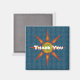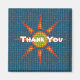 En ljus, sydväst, mosaik, orange och gult sol visas mot en mörk blått bakgrund och beskriver denna kylskåpsmagnet. Den levande orangen och gulten sol är koncentrerade på denna billiga magnet tillsammans med "Tack" som visas mitt i sol. Text kan anpassas om du vill.