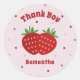Ett jordgubbsmärke med polka dots på en rosa bakgrund till använda som födelsedagsfest tack för. Ändra meddelandet och använda det för ett grattis på födelsedagen, en möhippa eller vad du vill!