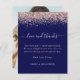 Ett ekonomiskt alternativ i BUDGET på en mindre storlek på 4,5 x 5,6 tum (110 lbs vikt), som är av samma tjocklek som ett vykort (är dock inte lämpligt för använda som vykort). OBSERVERA ATT DET FINNS EN inbjudan per lakan. . Budgetera Ro Guld Glitter, fotnotsflottan Bröllop Kärlek och tack. Ett glam med ett faux glitter gräns i ro guld överst och ett elegant-skript med dekorationer för Kärlek och Tack. På baksidan byt du ut bild mot din egen favorit från din dag som en keepy för dina gäster. Anpassa enkelt texten med ditt budskap och namn som är i mjuk rosa på marinblått.