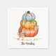 "Bläckservetter av Thanksgiving med staplade pumpor i orange och turkos, blomdetaljer och fras", tack, tack, tack, välsignelse." Anpassa genom att lägga till familjens namn eller spelar ingen roll text som du vill ha.