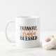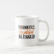 Den här designen innehåller texten "Tack, tacksam, välsignad" i en pastellblå bakgrund med texten "Tack och lov" överallt. Det är perfekt för Thanksgiving och fall eller höst. Det kan också vara en uppskattande gåva till vänner och familjemedlemmar.