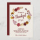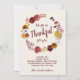 Thanksgiving hälsning med en vattenfärgad blommigt-andedräkt i det vackra, rustiska, fall/höst-färgen av burgundy, guld/senap-gult och grädde. Texten säger: "Vi är så tacksamma för dig." "Önskar dig en mycket glatt julhelg. Må du ha ett överflöd av sak att vara tacksam för i år." Ditt namn är undertecknat i grund i ett modernt penselteckensnitt. Anpassadet är helt och hållet, så gör det till en egen text.