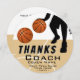 Tack till Coach Basketball Player. Svart basketspelare i aktionsilhuette och basketbollen bollar på basketbollsdomstolen. Tack för ett basketbuss... Anpassa med tränare namn, team, år och ditt namn och tack till din tränare.