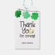 Det irländska temat är ett tack för märkrna - perfekt för tur en första födelsedag eller St patricks day. Dessa vackra tack till er märkre har ett mystiskt skrik och vattenfärgade illustrationer av irländsk schamprock och ett lyckligt hästskon. Ordalydelsen lyder "Tack för att du kommer!" och mallen är inställd på redo för att du ska lägga till din signering och namn. Bläddra i vår butik för att samordna inbjudningar och party-dekanter.