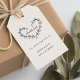 Anpassningsbar-designad bröllopsförmån tack för märkre med "tack" i en elegant handdragen hjärtkrans. Anpassa de här märkrna med par/brud och brudgummar namn och bröllop för en liten bit stil till dina bröllopsfavörer och gåvor.