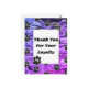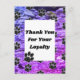 Det här vykortet för att visa uppskattning för affärspartner har ett mönster av svarta tassavtryck mot en blå och lila abstrakt mönstrad bakgrund. Små svarta tassavtryck syns över hela vykortet. En stor ifylld rektangel ger plats för dina tack till era lojala kunder. Anpassa snabbt och enkelt.
