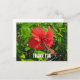 Detta tacksamhetskort har en vacker stor tropisk blomma. Grön lövverk omger den rosa blomman med "Tack" som visas i vit typsnitt längst ned på vykortet. Anpassa snabbt och enkelt. Massor av utrymme på baksidan för ytterligare text eller foton.