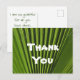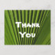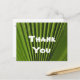 Säg "tack" med en antydan om tropikarna med det här billiga vykortet. Det här uppskattningskortet är perfekten att överraska någon speciell med ett hjärtligt uttryck för din uppskattning. Det här kortet innehåller ett naturfoto som fångar en ljus grönt handflatan löv som visar de djupa, skugga odlingarna av denna tropiska växt. "Tack" är centrerat i stort vitt teckensnitt och kan snabbt anpassas om du vill. Baksidan av det här vykortet kan snabbt anpassas för att säga exakt vad du vill.
