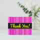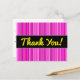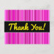 Den här vykortsdesignen har en mönster i tunn rand-färgad med olika skuggor av färg, t.ex. magenta och rosa. Det innehåller också meddelandet "Tack!" på framsidan i gultens skriptliknande text, tillsammans med ett tacksamhetsbudskap på baksidan i personligen.