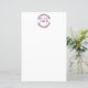 Visa din tacksamhet på den här chicen. Den har en andedräkt av löv i skuggor av lila över en vit bakgrund på framsidan och grund baksidan. I kransens centrum skrivs stil typografi med "Tack".