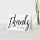 Vackra tack-kort med en elegant typsnittsstil och kalligrafi på framsidan mot en ren vit bakgrund. På insidan finns en plats för ditt eget unika meddelande.