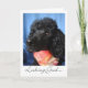 En svart pudel med handfärgad halsduk och nya hårdukar dekorerar omslaget på det här tackkortet för en groomer, stylist eller hårfrisör. Art, bild och versell copyright © Shoaff Ballanger Studios, 2022.