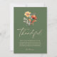 Den här eleganten och snyggten Thankful Wildblomme Modern Rustic Thanksgiving Helgdag Card skryter med en unik utformning som perfekt fångar kärnan i ett modernt fall i firande. Med sina vattenfärgsaccenter och sin rik höst färger kapslar den höstens och den rustiska charmens anda. Det förfinade kalligrafiskriptet och inbjudan till oliv grönt nyanser framkallar en känsla av värme, skapar det perfekt för vänner som samlas under Thanksgivingen och ger den en aning moody vibes som säkert imponerar. Med sin fängslande blandning av rustiskt och modernt inslag är detta kort för Thanksgiving av anpassningsbar ett underbart tillskott till alla hösthälsning. Thanksgivingens glädje och anda och se till att dina känslor framträder med ett kort som förkroppsligar skönheten i en Thanksgiving som samlar på sig en hjärtefråga!