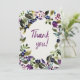 Tack! Vattenfärg-målade lila blommor Tack Kort