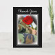 Foto av veteran som håller en enda, lång stjälk, röd ros på svart bakgrund. Låt dina veteraner veta hur mycket deras offer elak för dig och din frihet. Frontmeddelandet och insidermeddelandet kan anpassas med ditt eget ord.