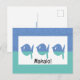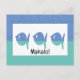 Tre roliga fiskar i Stilla havet, med blågrön havsyta och blå himmel ovanför på detta bedårande tackkort. Mahalo! Det betyder Tack i Hawaiian. Du kan klicka på Anpassa för att ändra ordet på framsidan eller texten på baksidan, som för närvarande ger den engelska översättningen av det hawaiianska ordet för Tack.