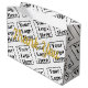 Du kan ersätta visningen med din logotyp. Den kommer att finnas som mönster på mjukpapperet. Det finns ett faux-skript (inte foil) guld som du kan redigera för att skapa ett anpassningsbar-meddelande. (Visas: Tack)