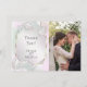 PHOTO TAANK DIG CARD | Lägg till foto - En klokare rosa luminescent bakgrund med ljusa ro löv, eukalyptus löv, baby utandning och gnistvängningar. Reverse är ett kompletterande samordnat färg. Den här designen ser särskilt bra ut när du väljer Pearl Shimmer pappert. Anpassa text, teckensnitt stil, färg och storlekt. Vi skapat att den här mallen är till för att göra det enkelt för dig att anpassa dig till din egen information. Detta är en del av en komplett Bröllop Stationery Suite med matchande bröllop, babydusch och andra händelsematerial. Originalteckning © av WhimsicalArt™.